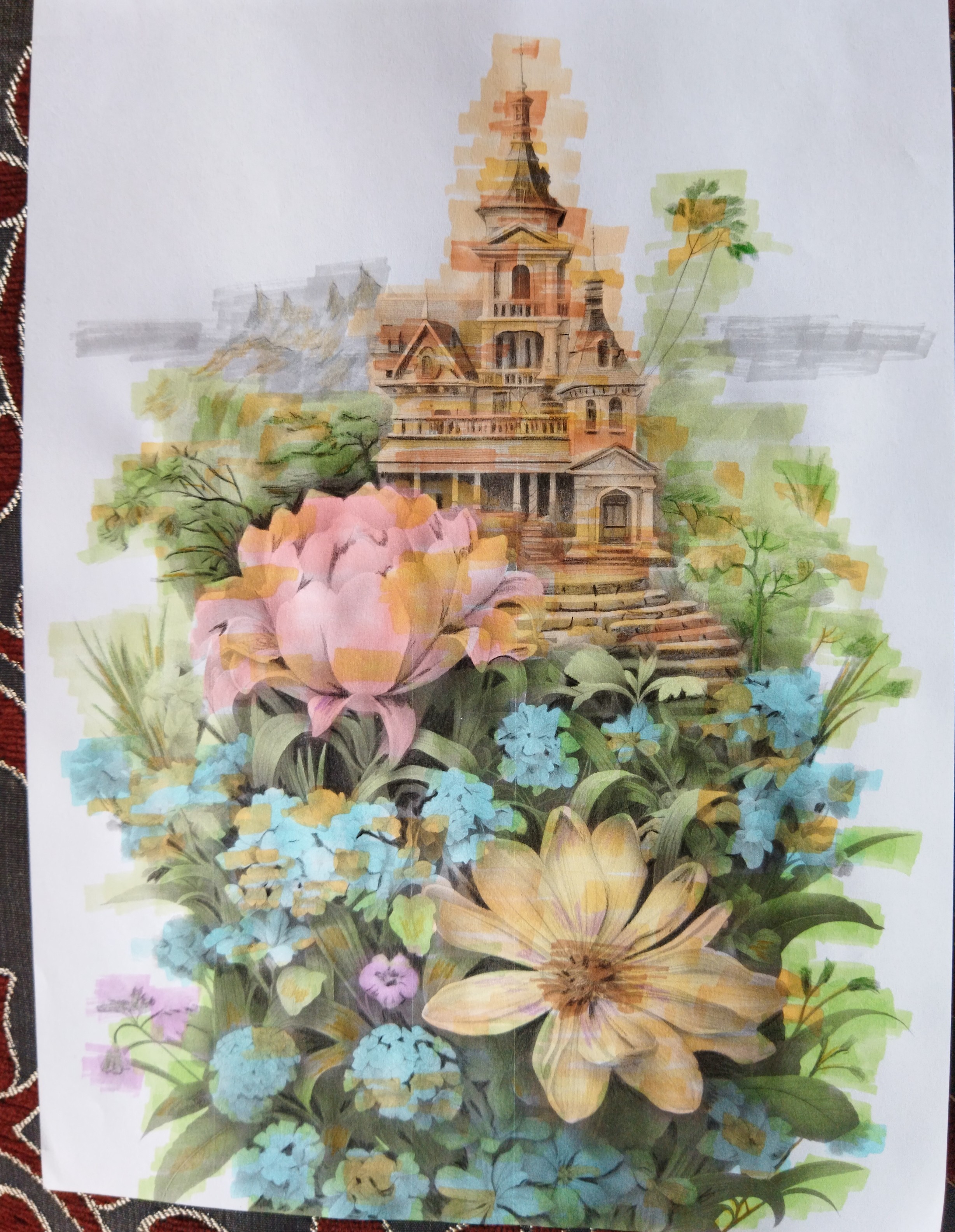 Réalisé aux feutres professionnels et aux crayons de couleurs à la mine huileuse pour un rendu artistique et un effet peinture créatif.