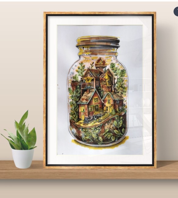 Réalisé aux crayons de couleurs et aux feutres professionnels pour un rendu artistique et un effet peinture créatif.