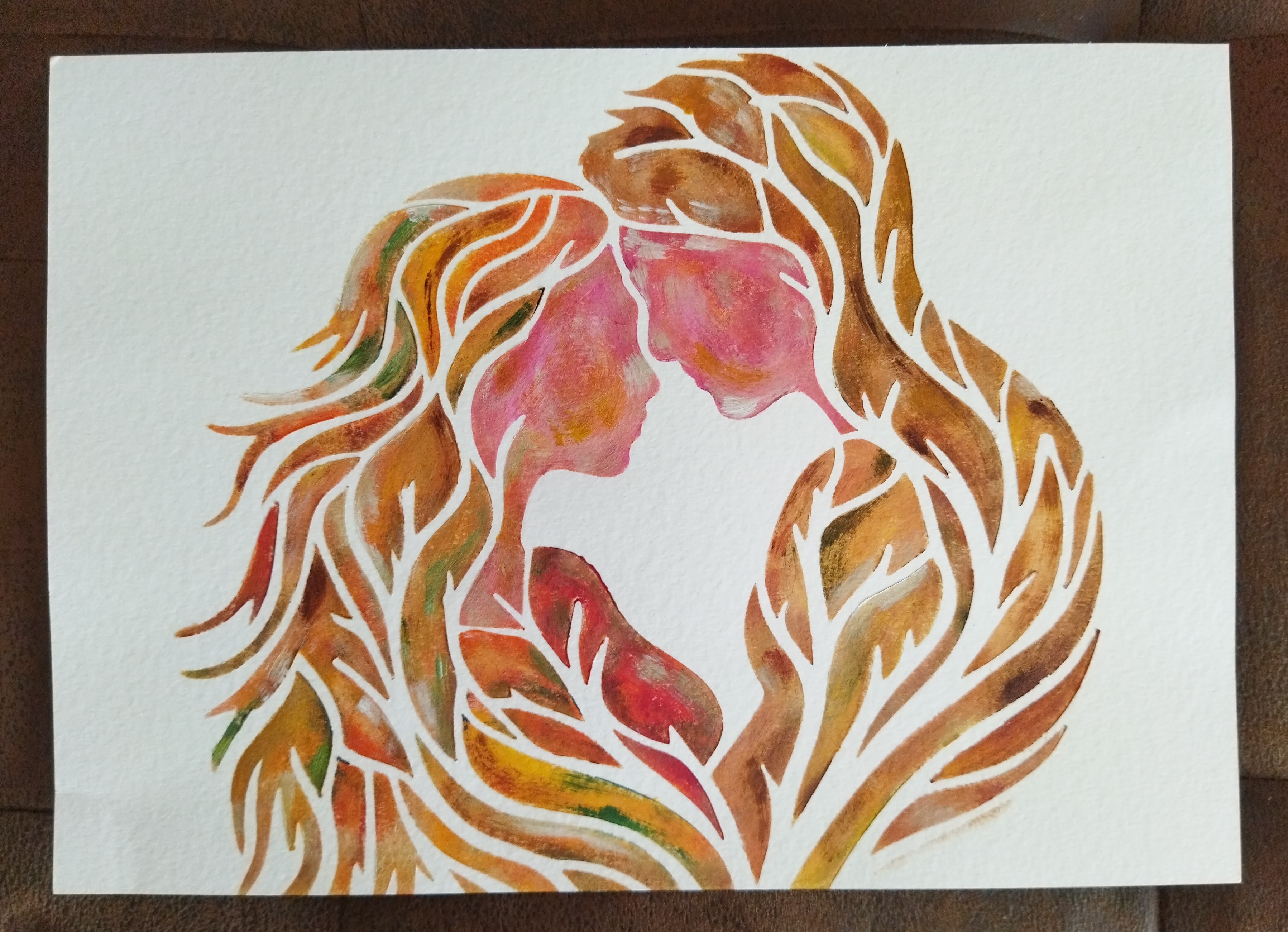Un joli tableau bientôt chez vous, illustré par un couple aux couleurs lumineuses et variées.
