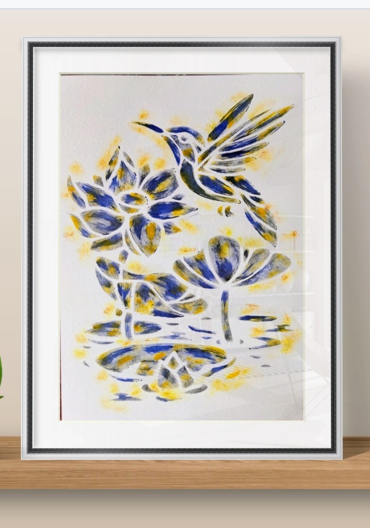 Pourquoi pas un joli tableau chez vous, illustré par un colibri bleu multicolore ?