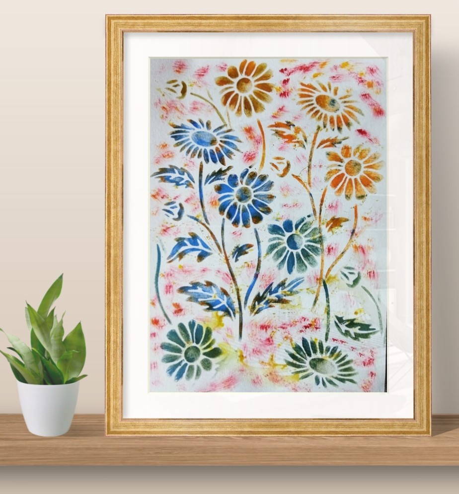 Réalisé à la peinture gouache avec un pochoir, pour vous offrir un rendu artistique.