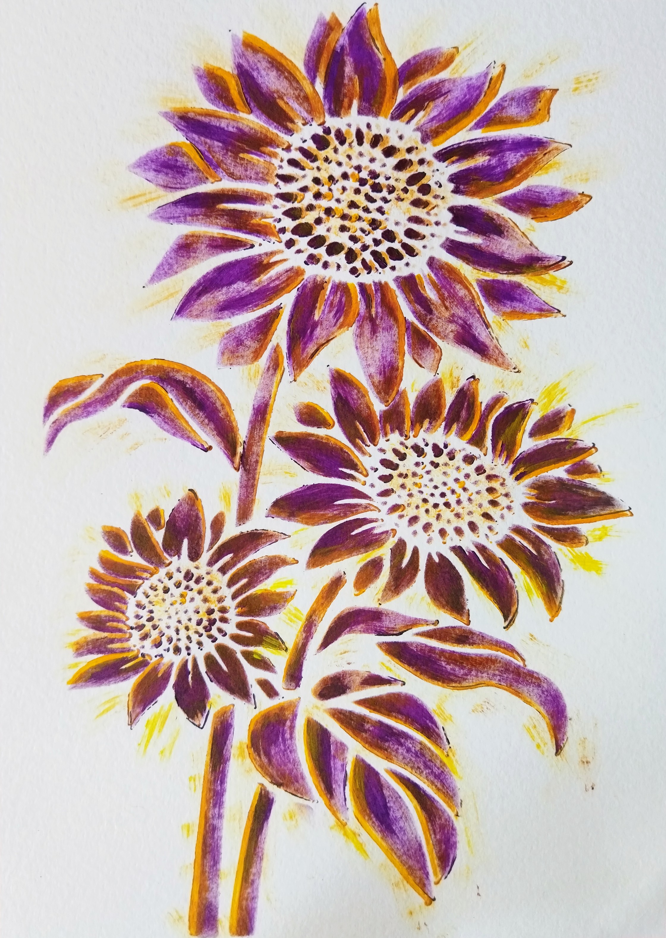 Plusieurs possibilités de décoration s'offrent à vous avec ces jolis tournesols aux couleurs violet nuancé.