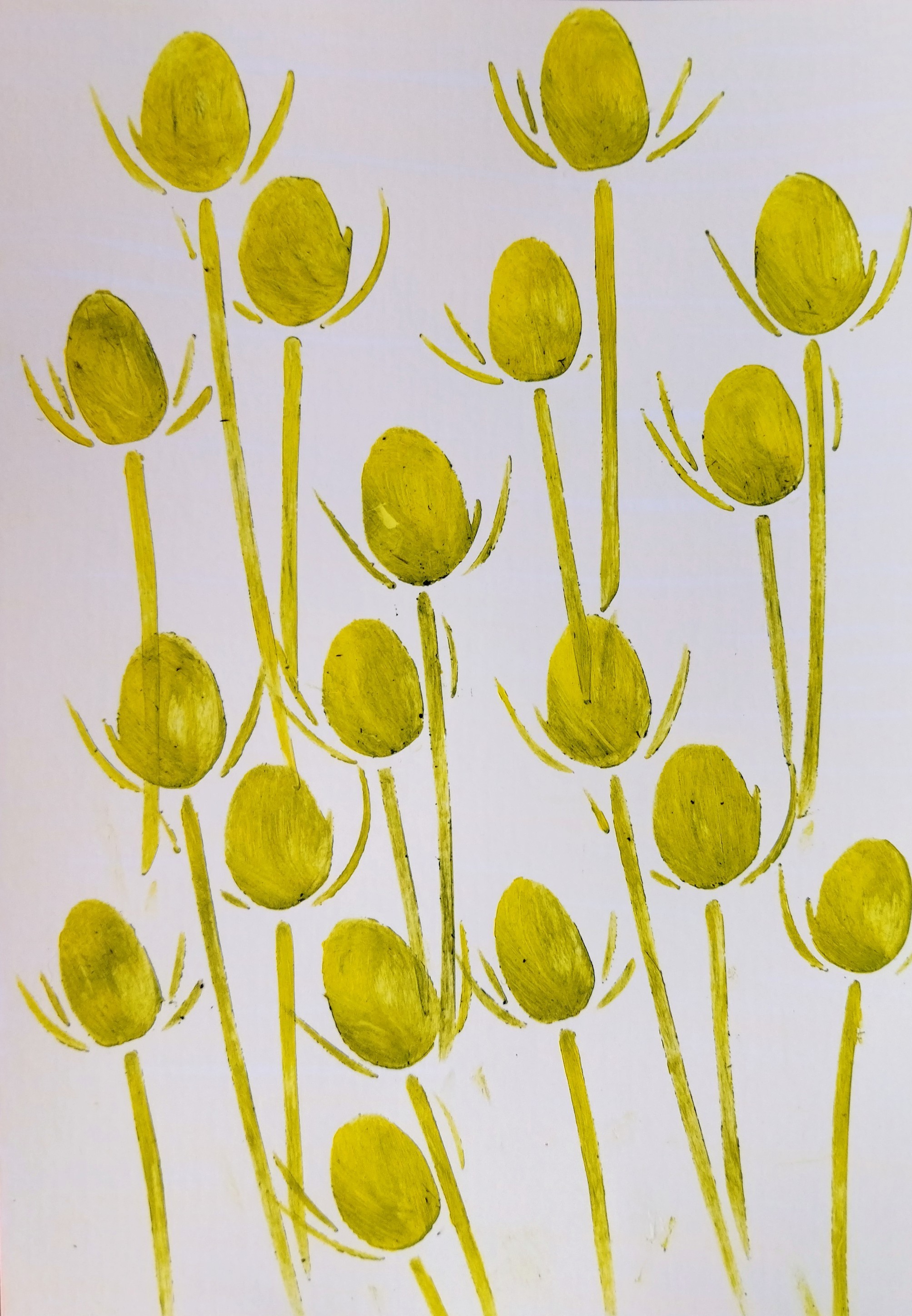 Mettez de l'originalité sur vos murs, avec ce joli dessin illustré par des boutons de fleurs à la couleur jaune nuancé.