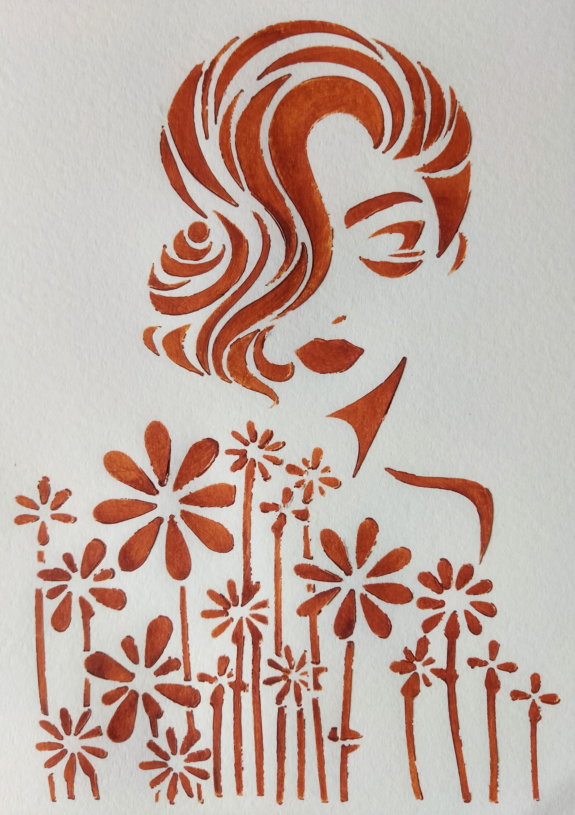 Réalisé à la peinture gouache avec un pochoir, pour un rendu artistique et créatif.