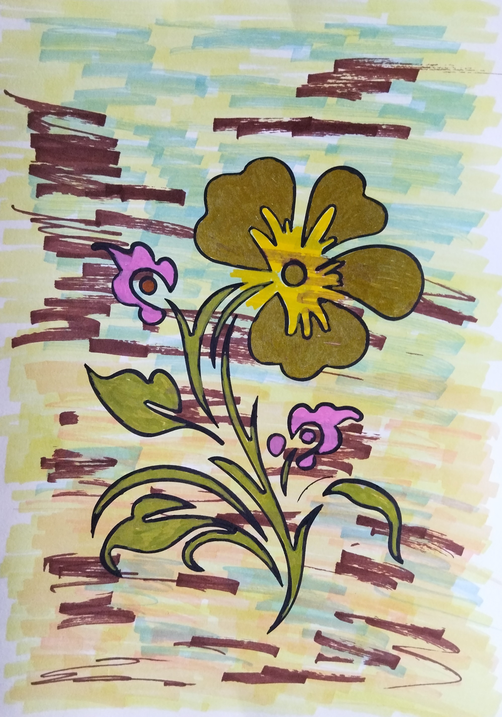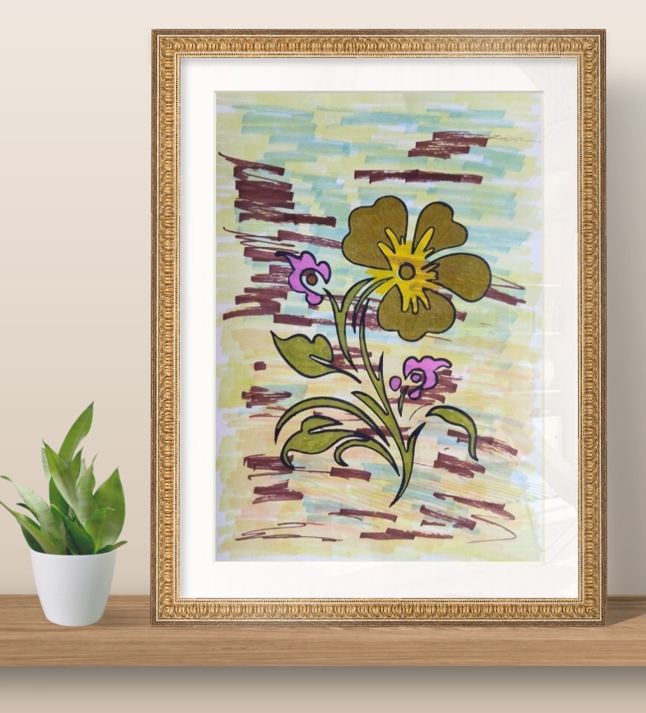 Quel joli rendu artistique pour ce dessin fleur pensée sur un fond bariolé multicolore.